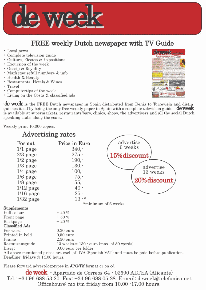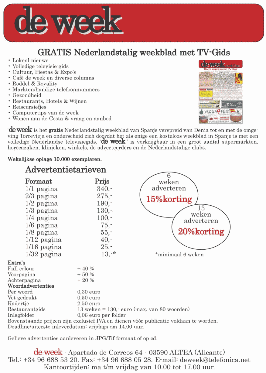 Het meest gelezen Nederlandstalige weekblad van Spanje!